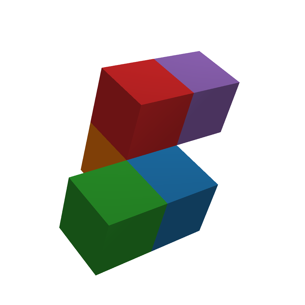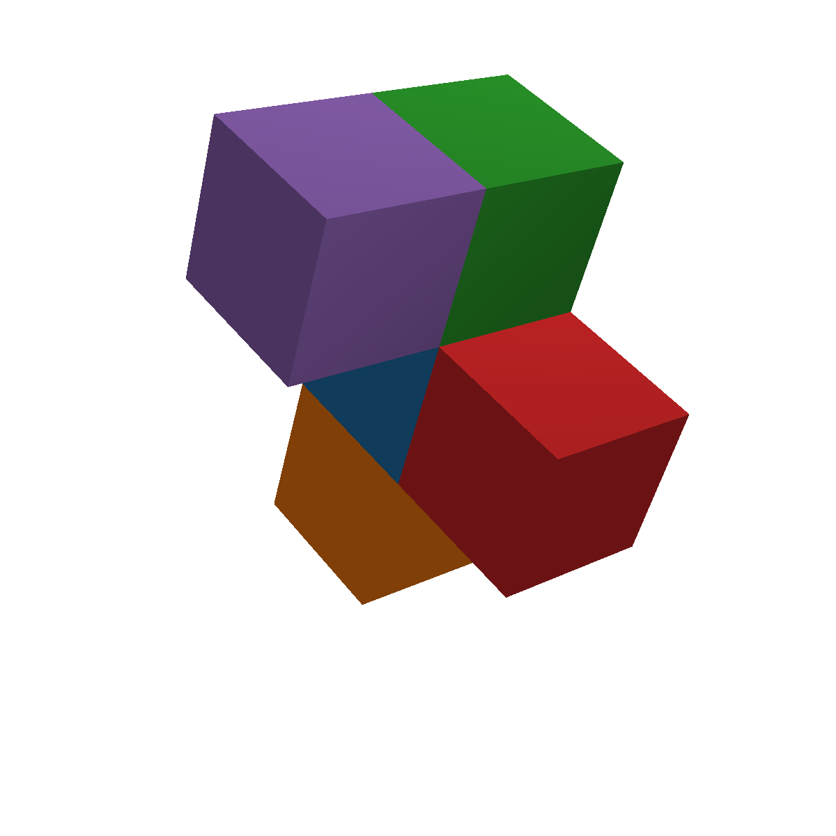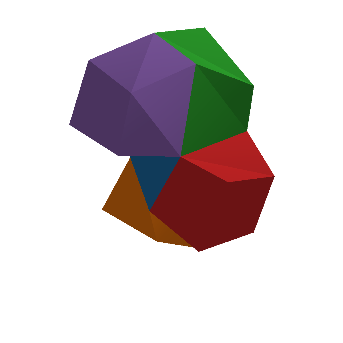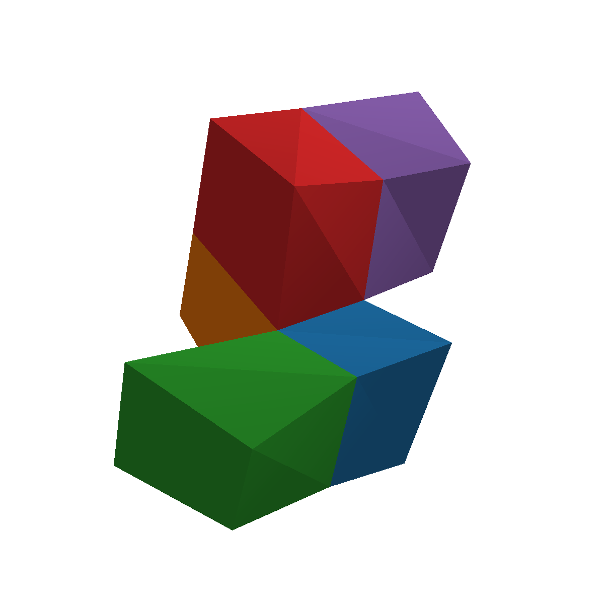 The figure below shows three sample polycubes (rows) of order five. Each shape is randomly deformed, by four increasing amounts (columns):